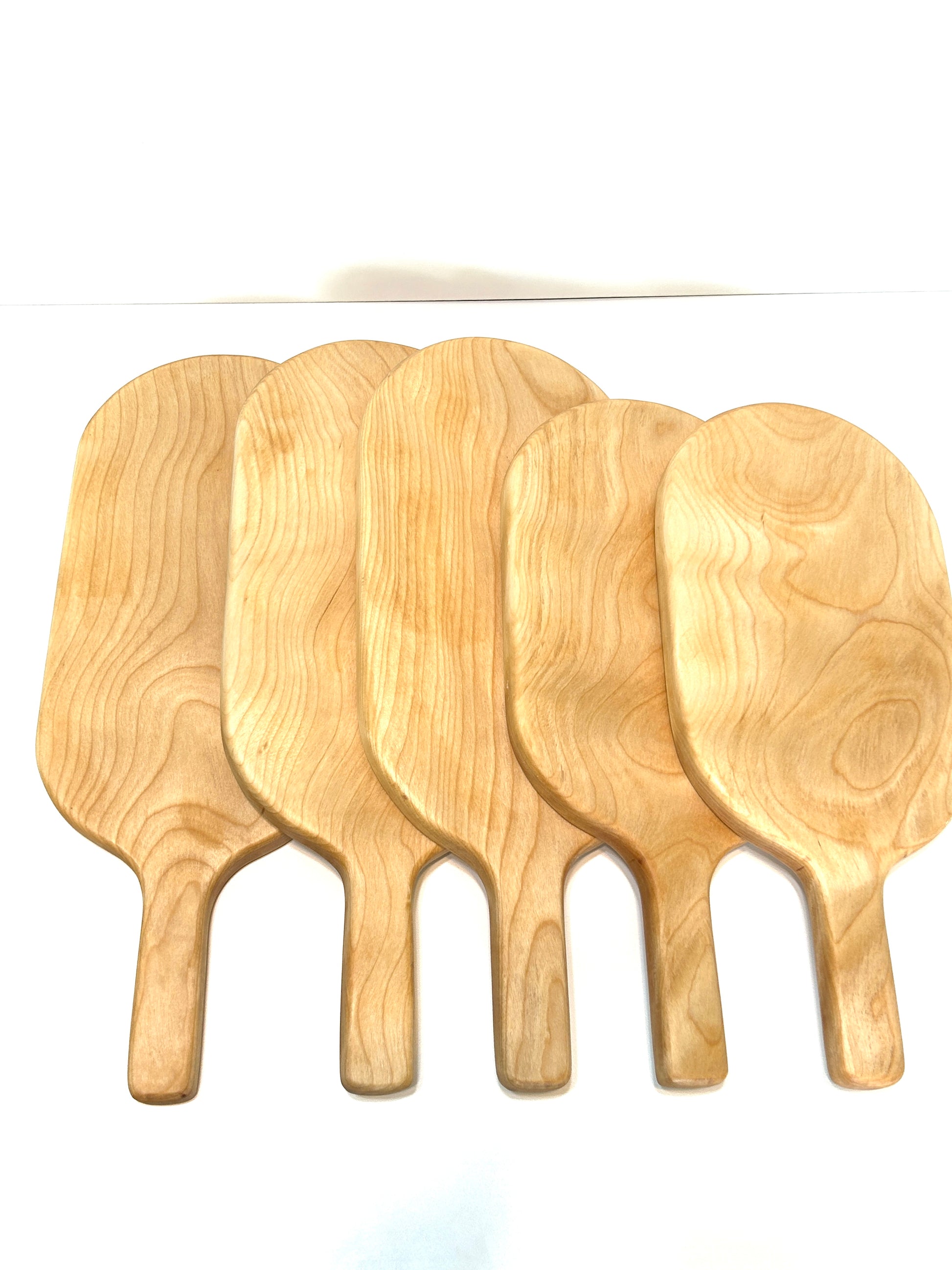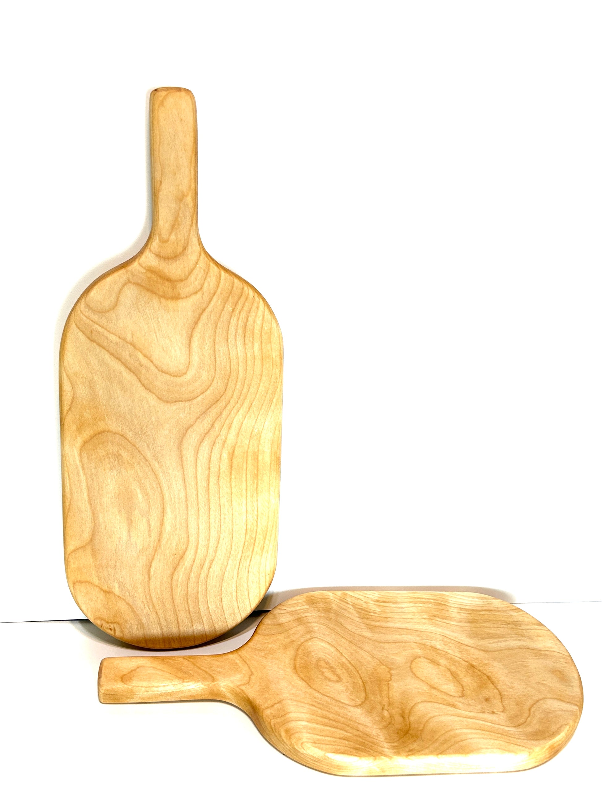 Crafted from light-colored Baltic birch, these bread boards are both functional and beautiful. With a sleek handle and softly rounded edges, they’re perfect for slicing bread, serving cheese, or displaying pastries. The natural grain and warm tone make them a timeless kitchen piece.