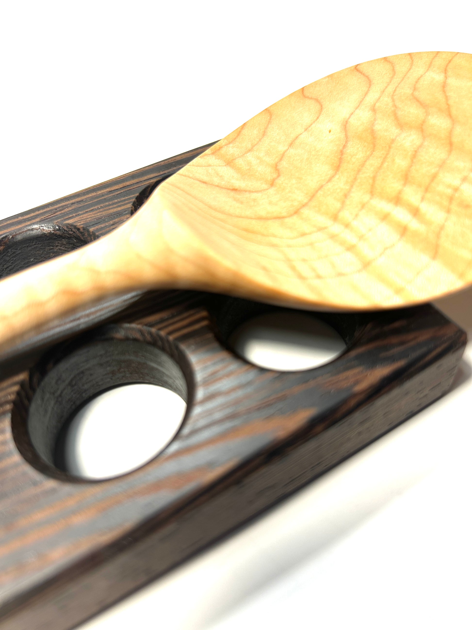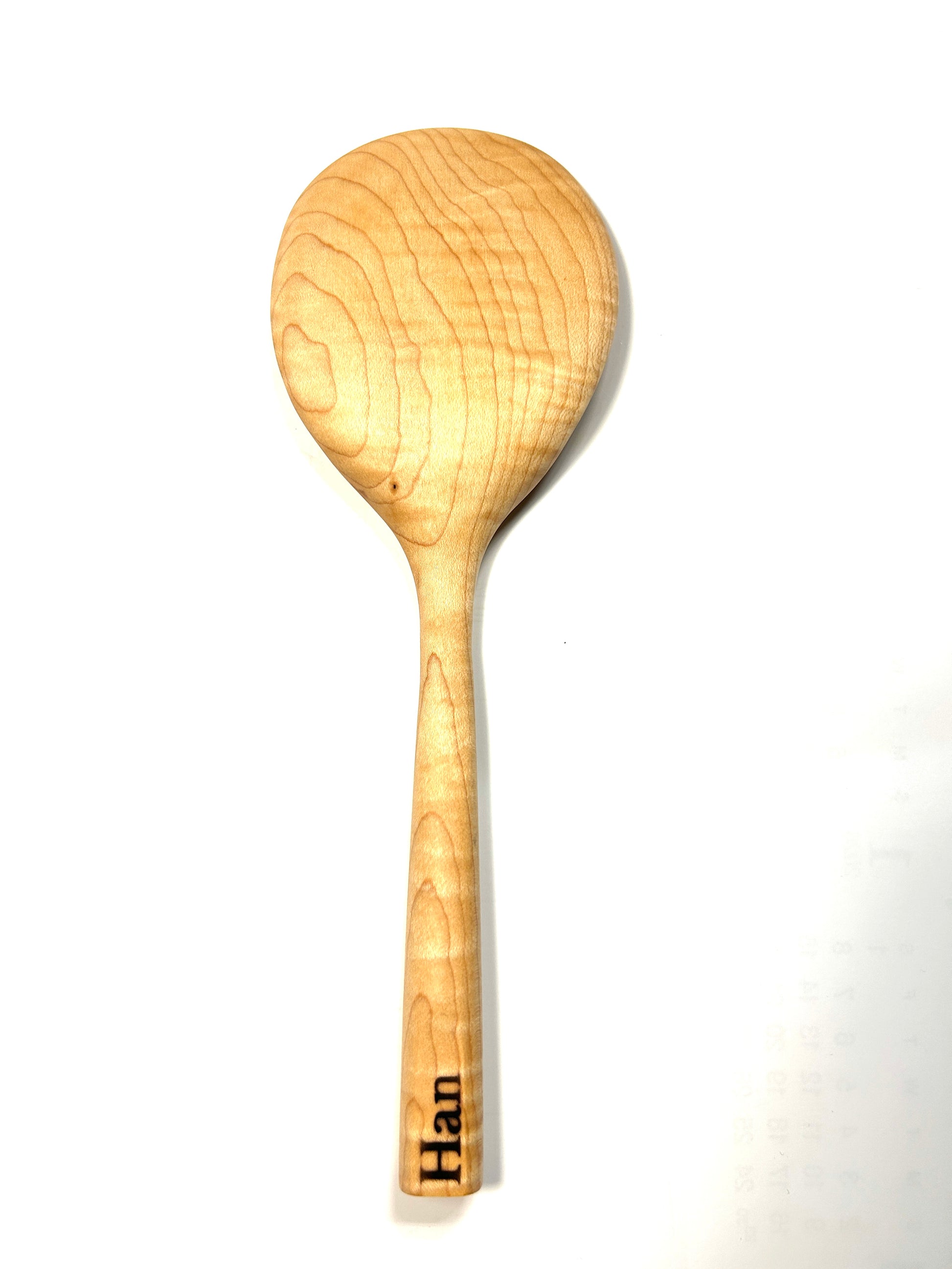 고급 메이플과 월넛 하드우드로 만든 원형 밥주걱입니다.